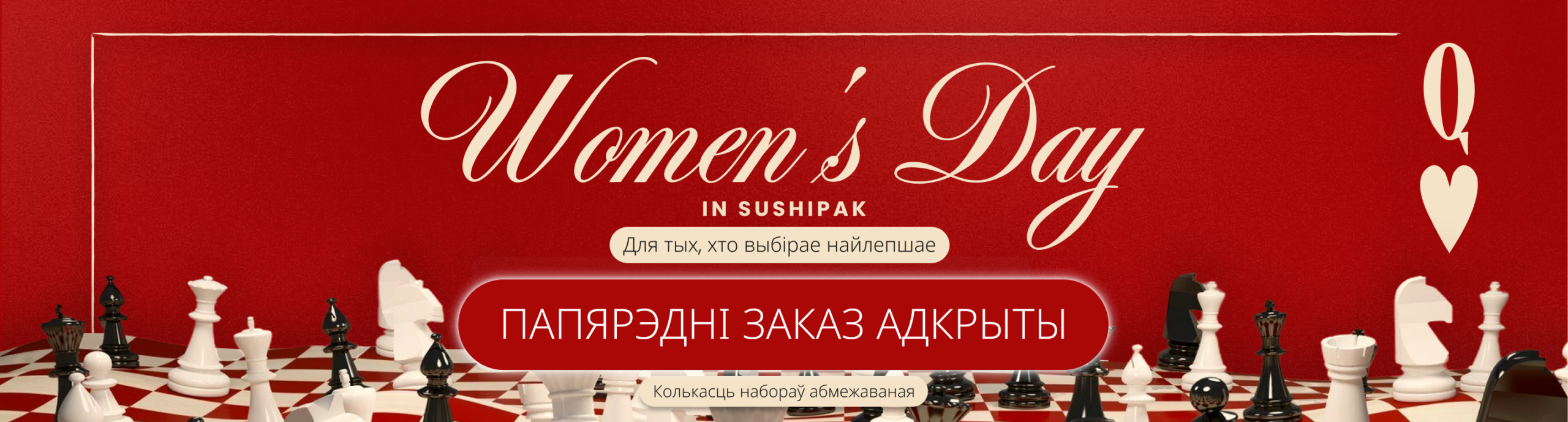 8x каліфорнія з крэветкай у тэмпуры, агурком, вслегка острым маянэзам, соўсам тэріякі, соўсам шрiрача i кунжутам, масага, абгорнутая ласосем, тунцом, вугром і крэветкай, 8x каліфорнія з крэветкай у тэмпуры, вслегка острым маянэзам, агурком, кунжутам і масага, 6x футамакі з тунцом, вслегка острым маянэзам, авакада, агурком і салатам, 6х футамакі з сурімі, вслегка острым маянэзам, кампіё і агурком, 6x футамакі з крэветкай у тэмпуры, агурком, салатам і вслегка острым маянэзам, 8x макі з сурімі