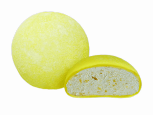 Mochi o smaku mango to eksplozja tropikalnej świeżości z intensywnym, soczystym aromatem dojrzałego mango. Kremowe nadzienie w miękkiej ryżowej otoczce przyjemnie chłodzi i orzeźwia, przypominając egzotyczny sorbet zamknięty w delikatnym cieście. Idealne jako letni deser o wyrazistym, owocowym charakterze.